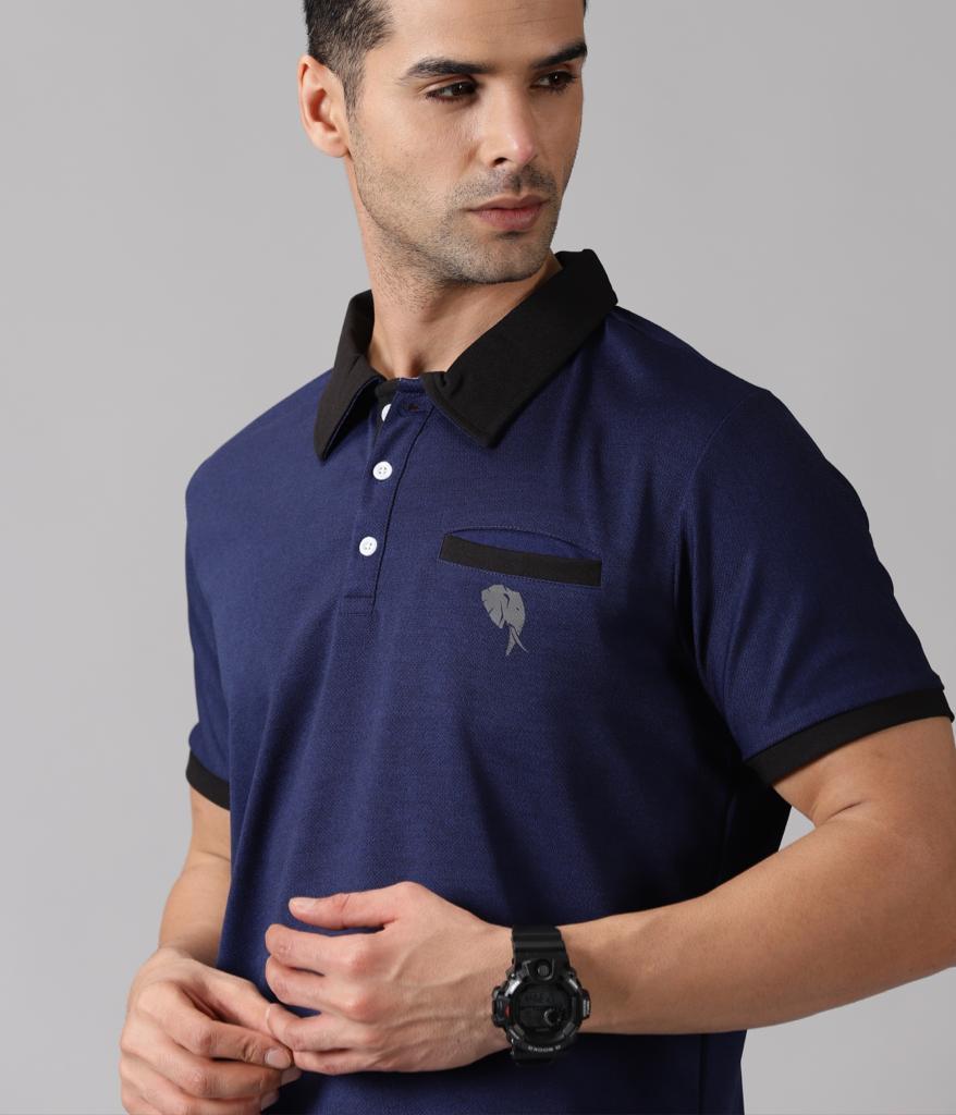 Airforce Blue n Black Pocket Polo T-Shirt
