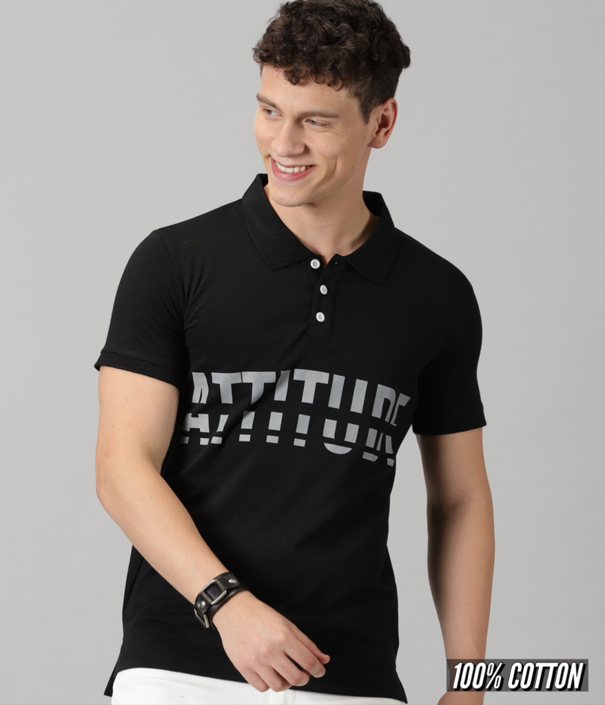 Black Polo || Attitude || 100% Cotton T-Shirt
