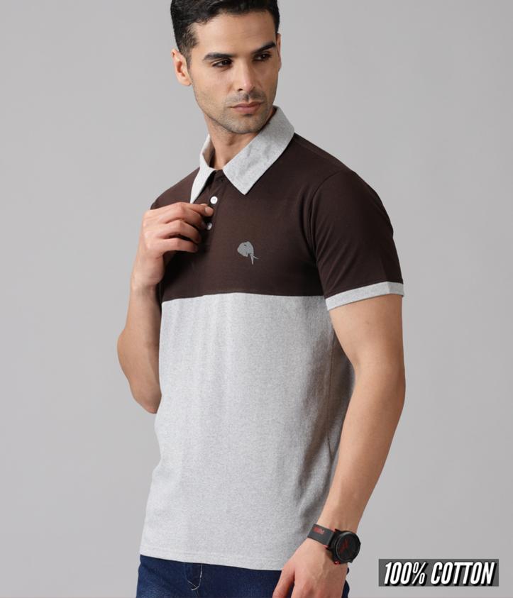 Notch|| Brown.Grey Polo || 100% Cotton T-Shirt