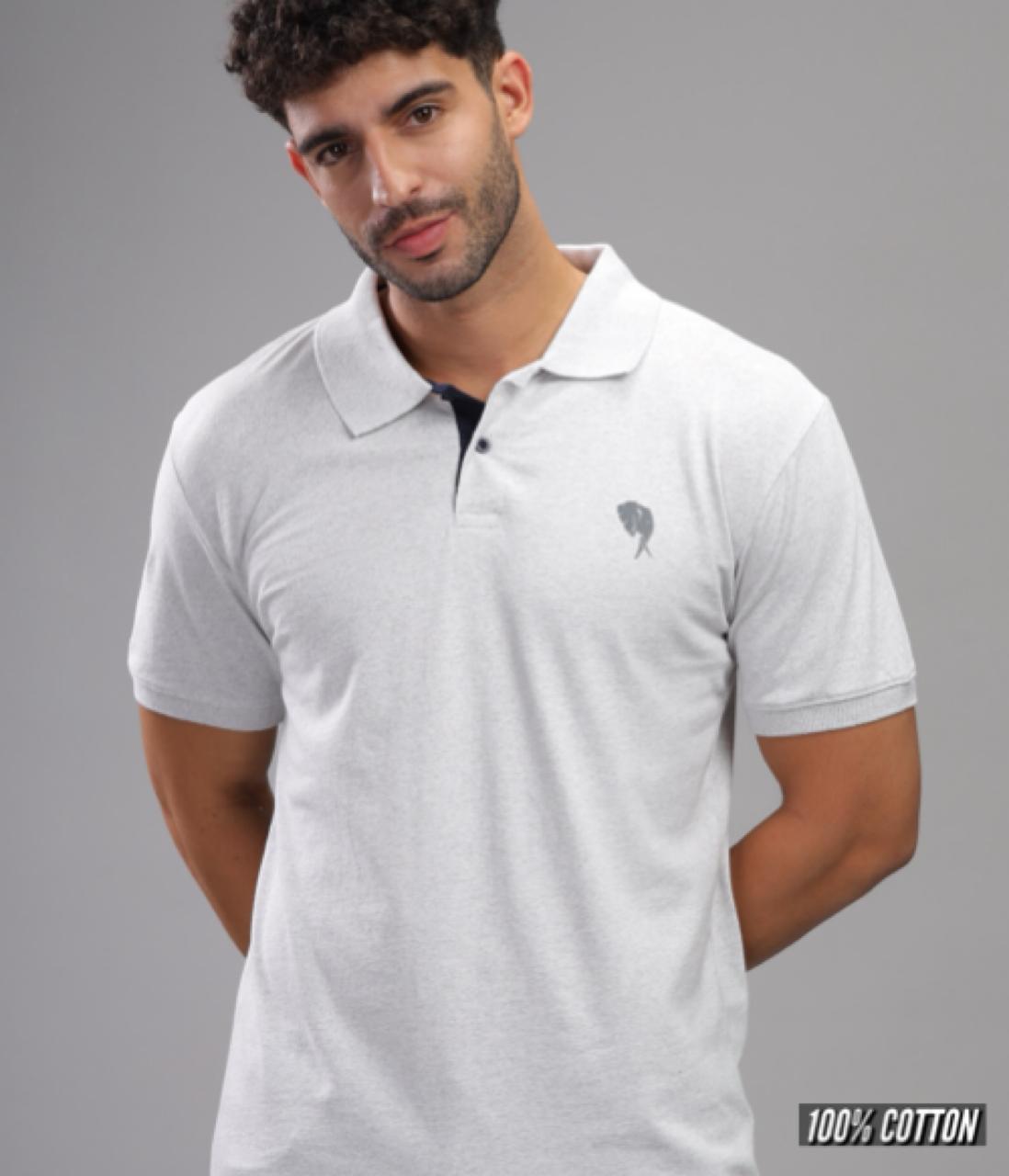 Pr25 || Silver Melange Polo || 100% Cotton T-Shirt